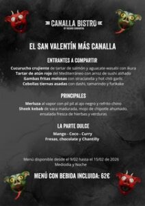 En Canalla Bistro no hay sitio para la prudencia. Se come con las manos, se chupa la salsa sin vergüenza y se brinda por los líos que aún no se han cometido. Cada plato está pensado para hacerte salivar y cada postre para dejarte sin defensas. Si no terminas riéndote, sin saber qué horas es y feliz, algo has hecho mal.